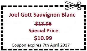 Joel Gott Sauvignon Blanc 2015 Normal Price $13.96 SALE PRICE $10.99 Aromas of papaya, grapefruit, pineapple and guava with softer notes of lemongrass and citrus. On the palate, the wine opens with bright, tropical flavors, followed by crisp, refreshing acidity and a long, clean, balanced finish.